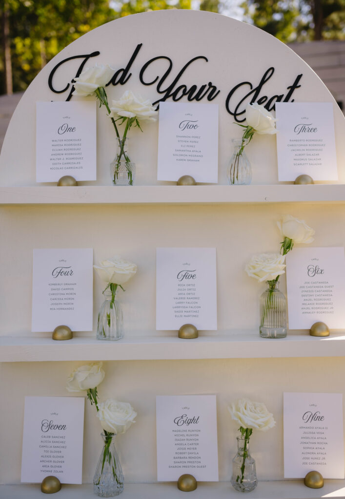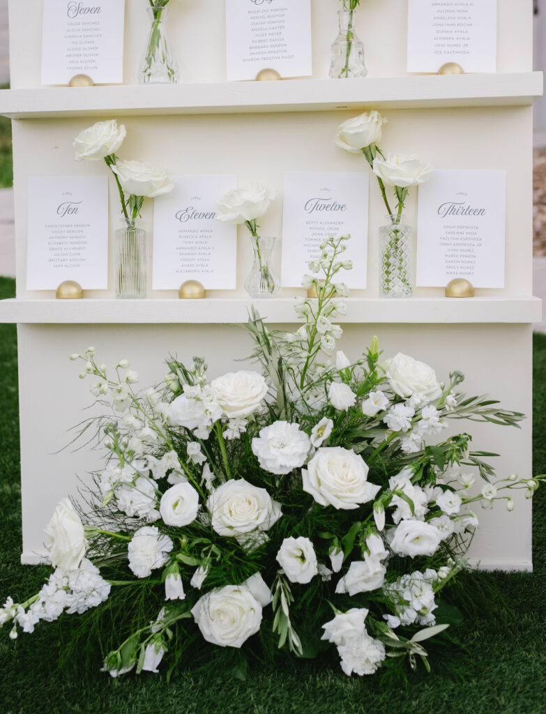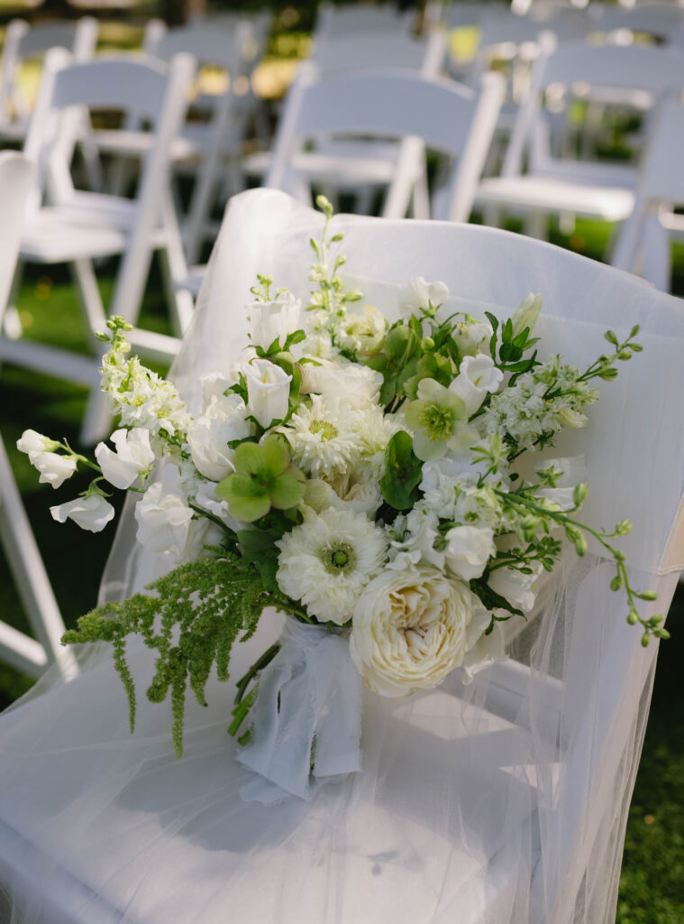 Together, these details tell a story of love that’s both refined and heartfelt. From the crisp floral arrangements to the heirloom-like keepsakes, every element feels thoughtfully chosen — a reflection of a couple whose love is elegant, enduring, and beautifully sincere.